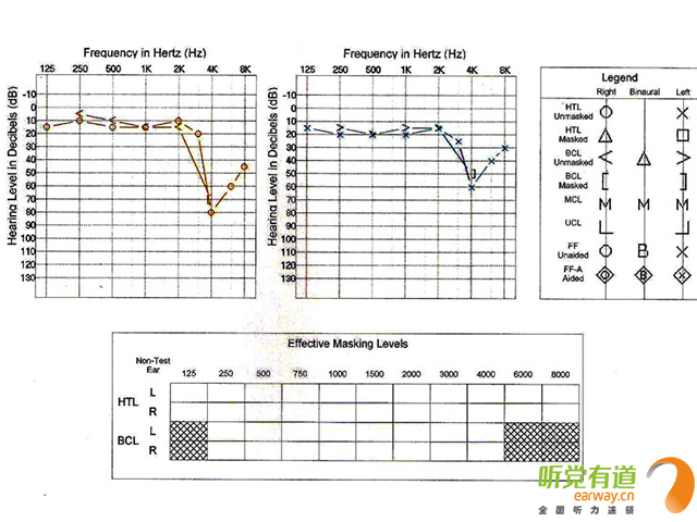 <span style="font-size:16px;"> 首先聽覺有道跟大家解釋一下純音測聽的定義以及臨床意義。純音測聽包括氣導聽閾測試(AC)和骨導聽閾測試(BC),以耳機及骨導振子給聲,反應受試者在安靜環境下能夠聽到的各個頻率的最小聲音的聽力級(氣導頻率范圍125-8000Hz,骨導250-4000Hz)。它是目前能準確反映聽敏度的主觀行為測試方法之一,在臨床上是最基本最重要的聽力檢查方法。</span></p><p><span style="font-size:16px;"><br /></span></p><p style="text-align: center;"><span style="font-size:16px;"><img src="/upfiles/201803010200415958.jpg" align="middle" alt="" /><br /></span></p><p style="text-align: center;"><span style="font-size:16px;"><br /></span></p><p><span style="font-size:16px;"> 先整體看一下聽力圖,它的橫坐標是純音的頻率,縱坐標表示的是聽力級(單位為db HL),從上往下看數字是變大的。0表示聽力零級,簡單地說就是科研人員測了很多聽力正常男女的聽力,以他們能聽到的最小聲音作為聽力零級。所以如果你的聽力是正常的話,聽力圖上的閾值曲線應該在零附近浮動,如果你聽力超常,那就在0以上也就是為負值了。如果你聽力下降,那線就往下走,越往下就說明聽力損失得越多。從生活常識上理解,所謂聽閾聽閾,閾值越低表示你能聽到越小的聲音,聽力就越好,閾值越高,聽力越差。</span></p><p><span style="font-size:16px;"> 接著說一下聽力圖上的圈圈叉叉代表的意思。叉叉表示左耳的氣導聽閾,圈圈表示右耳氣導,開口向左的尖括號表示左耳骨導,開口向右的表示右耳骨導。旁邊的masked表示加掩蔽之后的聽力。</span></p><p><span style="font-size:16px;"> 為什么要加掩蔽呢?舉個例子:你右耳聽力比左耳好,當你左耳給聲強度很大,會出現你左耳其實沒聽見但右耳偷聽到了的情況,這時你就會反應,但是這時你的反應能代表左耳的聽閾嗎?肯定比你實際聽閾要好,所以測聽人員會在你右耳加噪聲,不讓你右耳偷聽左耳的聲音,這樣測出來的左耳聽力稱掩蔽之后的聽閾。左耳掩蔽之后的氣導用小正方形來表示。同理,右耳掩蔽用小三角形表示。骨導也需要掩蔽。左耳掩蔽后骨導用向左的方括號表示,右耳用向右的方括號表示。</span></p><p><span style="font-size:16px;"> 最后我們該如何分析聽力圖。簡單地說,氣導的傳聲路徑包括外中內耳以及神經部分,骨導只包括內耳和神經部分,因此出現骨氣導差則表明聽覺通路上有外中耳病變。考慮到各種誤差因素,一般認為骨氣導相差10db HL屬于正常范圍。根據骨氣導的關系可以將聽力損失分為傳導性聽力損失、感音神經性聽力損失以及混合性聽力損失。骨氣導差大于10,且骨導在正常范圍為傳導性聽損;骨氣導一致且都在正常范圍以外為感音神經性聽損;骨氣導差大于10,骨導在正常范圍之外為混合性聽損。</span></p><p><span style="font-size:16px;"> 當然,如果想進一步定位聽力診斷結果,還需要結合其他的一些測試如聲導抗、ABR、耳蝸電圖、耳聲發射、40Hz、影像學檢查等。</span></p><p><span style="font-size:16px;"> 更多詳情請登錄www.huiyoutank.com。</span></p>" />