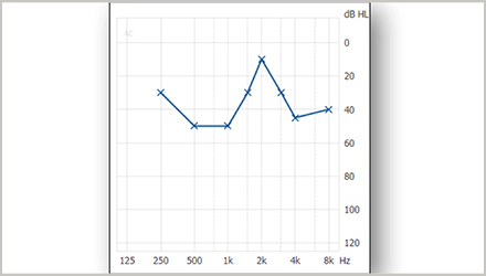 <span style="font-size:16px;"> 我們今天分享的是處理不規(guī)則型聽力損失的驗配技巧。</span></p><p><span style="font-size:16px;"> 什么是不規(guī)則型聽力損失?</span></p><p><span style="font-size:16px;"> 不規(guī)則型聽力損失,是指聽力圖上曲線彎彎曲曲,毫無規(guī)則的聽力損失,如下圖。</span></p><center><span style="font-size:16px;"><img alt="" src="/upfiles/201808290214166730.png" width="440" height="250" /></span></center><p></p><p><span style="font-size:16px;"> 它屬于復雜案例的一種,通常,我們在驗配過程中需要耗費大量精力,反反復復調試可能也不一定效果好。不規(guī)則型聽力損失在日常的驗配中不如陡降型聽力損失常見,可查閱的臨床試驗和深入研究都很少。</span></p><p><span style="font-size:16px;"> 今天介紹的調試技巧主要是日常驗配的經驗,先來看看調試的基礎知識點。</span></p><p><span style="font-size:16px;"> 每個調試技巧都有它特有的理論基礎,了解了這個基礎,我們就會發(fā)現,調試很簡單,這也再一次體現了打好基礎的重要性。</span></p><p><span style="font-size:16px;"> 根據研究表明,不規(guī)則型聽力損失的弱聽人士,其MCL(舒適閾)曲線與UCL(不舒適閾)曲線通常比聽閾曲線更加平坦,如下圖所示為HTL(聽閾)曲線、MCL曲線和UCL曲線。</span></p><center><span style="font-size:16px;"><img alt="" src="/upfiles/201808290214226016.png" width="440" height="250" /></span></center><p></p><p><span style="font-size:16px;"> 這個知識點不僅僅適用于不規(guī)則型聽力損失,絕大部分聽力損失都是如此,包括陡降型聽力損失、上升型聽力損失等等。引起這種情況的原因,我們可以追溯到一些基本的心理聲學原理。</span></p><p><span style="font-size:16px;"> 首先我們先來看看什么是舒適閾MCL與不適閾UCL,它們有個共同的特性就是都與響度有關。通俗來說,MCL是我們感覺到聲音聽起來,既清楚又舒服的響度;UCL則是我們聽到聲音覺得震耳、難受時的響度。</span></p><p><span style="font-size:16px;"> 接下來我們再來看一看等響曲線。等響曲線簡單來說,是指聽力正常者感覺響度相同時的純音聲壓級與頻率關系的曲線。</span></p><p><span style="font-size:16px;"> 下圖為等響曲線圖,橫坐標是頻率,縱坐標是聲壓級。</span></p><center><span style="font-size:16px;"><img alt="" src="/upfiles/201808290214275568.png" width="440" height="250" /></span></center><p></p><p><span style="font-size:16px;"> 我們看到,圖中每條曲線上的點都對應不同頻率和不同聲壓級,但是,我們人耳感覺到的響度是一樣的。每條曲線上注有一個數字,單位是方,意思是該條曲線上的任一點響度都一樣。</span></p><p><span style="font-size:16px;"> 從上圖中,我們可以發(fā)現,響度越大,即圖中越靠上方的等響曲線,曲線越平坦。</span></p><p><span style="font-size:16px;"> 換句話說,在高響度的情況下,不同頻率的聲音在相同聲壓級時聽上去一樣響。這就是我們MCL曲線和UCL曲線比HTL曲線都平坦的原因之一。這個知識點是后面調試技巧的基礎。</span></p><p><span style="font-size:16px;"> 接下來我們說驗配技巧:</span></p><p><span style="font-size:16px;"> 1、驗配處方公式的選擇</span></p><p><span style="font-size:16px;"> 這里我們主要說說常用的兩大經典公式,一個是DSL i/o公式(或DSL v5,后文只用DSL i/o表示),一個是NAL-NL2公式。</span></p><p><span style="font-size:16px;"> DSL i/o 是一種基于閾值考慮的公式,它將聽閾HTL與不舒適閾UCL(如未測量則自動估算)都考慮進去,并試圖將所有的聲音都“安排在”弱聽人士剩余的聽覺動態(tài)范圍內,保證響度的正常化。</span></p><p><span style="font-size:16px;"> 也正因此,你可能會發(fā)現,它所提供的各頻率增益之間差別較大,可能這里只有幾分貝的增益,附近頻率卻有幾十分貝的增益。</span></p><p><span style="font-size:16px;"> NAL-NL2則與DSL不同,它會預測患者的響度變化,考慮到MCL曲線趨于平坦,于是乎,最后的增益也是比較平坦的。基于此,為保證其增益相對平衡,甚至有些地方會達不到聽力損失所需增益,或超出所需增益。兩公式的增益補償如下圖所示。</span></p><center><span style="font-size:16px;"><img alt="" src="/upfiles/201808290214323691.png" width="440" height="250" /></span></center><p></p><p><span style="font-size:16px;"> 大量的驗配結果發(fā)現,NAL -NL2 公式在處理不規(guī)則聽力損失時,有更好的效果。</span></p><p><span style="font-size:16px;"> 2、增益微調</span></p><p><span style="font-size:16px;"> 在使用NAL-NL2公式后,進行進一步微調時,我們建議可以適當減少500Hz-1000Hz的增益,適當增加2000Hz處的增益。</span></p><p><span style="font-size:16px;"> 這是考慮到2000Hz頻率附近的有用信息非常多,而低頻信息較少,適當增加2000Hz處的增益可以讓弱聽人士聽到更多有用信息。 微調后,我們發(fā)現,弱聽人士并不會覺得中高頻增益太高,而低頻增益太少,并且也沒有出現一些與之相關的不適反應。</span></p><p><span style="font-size:16px;"> 除了如上特定頻率的增益微調,我們建議適當跳出不規(guī)則型聽力損失的聽力圖,把增益頻響曲線調得平滑些,如下圖所示,效果會更好。</span></p><center><span style="font-size:16px;"><img alt="" src="/upfiles/201808290214375053.png" width="640" height="210" /></span></center><p></p><p><span style="font-size:16px;"> 哪怕對照著聽力圖的話,在某些頻率處的增益好像過高或過低也沒關系。沒錯,對于不規(guī)則型聽力損失來說,“彎曲”對“平滑”才是“配”。</span></p><p><span style="font-size:16px;"