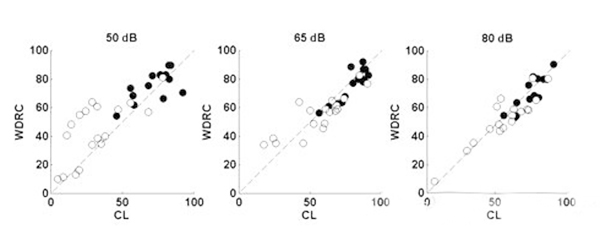 <span style="font-size:16px;"> 重度聽(tīng)力損失是500Hz、1000Hz、2000Hz和4000Hz平均聽(tīng)閾在61dB HL和80dB HL之間的聽(tīng)力損失。重度聽(tīng)損患者更趨向于:</span></p><p><span style="font-size:16px;"> 1、 聽(tīng)力損失時(shí)間較久;</span></p><p><span style="font-size:16px;"> 2、 有助聽(tīng)器佩戴史;</span></p><p><span style="font-size:16px;"> 3、 言語(yǔ)分辨率較低;</span></p><p><span style="font-size:16px;"> 4、 噪音環(huán)境中交流困難。</span></p><p><span style="font-size:16px;"> (一)重度聽(tīng)力損失的特點(diǎn)</span></p><p><span style="font-size:16px;"> 60dB HL是單純外毛細(xì)胞損傷和內(nèi)外毛細(xì)胞共同損傷的分界點(diǎn),內(nèi)毛細(xì)胞受損預(yù)示著重度聽(tīng)力損失,這類患者的頻率選擇能力降低,在相關(guān)頻率范圍內(nèi)難以分辨兩種聲音。這是噪聲環(huán)境下交流困難的主要原因。</span></p><p><span style="font-size:16px;"> 簡(jiǎn)單來(lái)說(shuō),頻率選擇能力越低,自身降噪能力越差,噪聲下識(shí)別信號(hào)的能力也就越差。</span></p><p><span style="font-size:16px;"> (二)選擇合適的放大策略</span></p><p><span style="font-size:16px;"> 反饋抑制:這項(xiàng)技術(shù)在傳統(tǒng)方法的基礎(chǔ)上有更好的減少嘯叫的效果。</span></p><p><span style="font-size:16px;"> 指向性麥克風(fēng):有指向性功能的助聽(tīng)器可以明顯提高信噪比(SNR)。現(xiàn)在自適應(yīng)指向性麥克風(fēng)廣泛地應(yīng)用于大功率耳背機(jī)中。</span></p><p><span style="font-size:16px;"> 對(duì)于噪聲下言語(yǔ)交流困難的重度聽(tīng)力損失患者,選配帶有指向性麥克風(fēng)的助聽(tīng)器效果顯著。</span></p><p><span style="font-size:16px;"> 聽(tīng)力學(xué)家對(duì)重度聽(tīng)損人士的指向性麥克風(fēng)做過(guò)獲益度測(cè)試,發(fā)現(xiàn)平均言語(yǔ)識(shí)別能力提升了14%。</span></p><p><span style="font-size:16px;"> 重度聽(tīng)損患者使用指向性功能時(shí)必須保證一定低頻增益,否則他們會(huì)感覺(jué)聲音不夠洪亮。</span></p><p><span style="font-size:16px;"> 寬動(dòng)態(tài)范圍壓縮線路(WDRC):</span></p><p><span style="font-size:16px;"> 如下圖,白點(diǎn)是重度聽(tīng)力損失患者的輔音識(shí)別得分,黑點(diǎn)是輕度至中度聽(tīng)損患者的輔音識(shí)別得分;每位受試者佩戴四通道的耳背機(jī),驗(yàn)配采用NAL公式;測(cè)試言語(yǔ)聲強(qiáng)度分別為50dB SPL、65dB SPL和80dB SPL;比較WDRC和線性輸出壓縮限制(CL)兩種線路的得分。</span></p><center><span style="font-size:16px;"><img alt="" src="/upfiles/201809170201049787.png" width="600" height="240" /></span></center><p></p><p><span style="font-size:16px;"> 等分位于對(duì)角線附近代表兩種處理方式效果相似,得分位于對(duì)角線上方表示W(wǎng)DRC線路效果更好,而下方則表示CL線路效果更好。</span></p><p><span style="font-size:16px;"> 對(duì)重度聽(tīng)損患者來(lái)說(shuō),輸入輕聲和中等聲時(shí)WDRC線路比CL線路效果更好;輸入響聲時(shí)兩種線路的區(qū)別并不大。所以使用WDRC線路可以獲得比CL線路更高的言語(yǔ)識(shí)別率。</span></p><p><span style="font-size:16px;"> 壓縮速度:壓縮越深可聽(tīng)度越高,因?yàn)榛颊呖梢月?tīng)到更寬的聲音響度范圍。</span></p><p><span style="font-size:16px;"> 快反應(yīng)壓縮(起效和釋放時(shí)間很短)可以降低元音(響度較大)增益并提高輔音(響度較小)增益,從而提高可聽(tīng)度。</span></p><p><span style="font-size:16px;"> 所以理論上來(lái)講,對(duì)于重度聽(tīng)損人士,使用多通道助聽(tīng)器、低壓縮拐點(diǎn)、高壓縮比、音節(jié)壓縮,可以最大程度提高驗(yàn)配效果。</span></p><p><span style="font-size:16px;"> 但壓縮越深就意味著有聲音失真越大,音節(jié)壓縮丟失了重要言語(yǔ)信息,導(dǎo)致輔音分辨不清。若要保留這些信息,則需要慢反應(yīng)壓縮(起效和釋放時(shí)間較長(zhǎng))。</span></p><p><span style="font-size:16px;"> 最好的情況是在提高可聽(tīng)度的同時(shí)還保證信號(hào)不失真,但目前很難實(shí)現(xiàn),找到二者的平衡點(diǎn)是最佳的選配方案。</span></p><center><span style="font-size:16px;"><img alt="" src="/upfiles/201809170201141216.png" width="440" height="250" /></span></center><p></p><p><span style="font-size:16px;"> 上圖為一組重度聽(tīng)力損失患者選配快速和慢速WDRC線路的言語(yǔ)識(shí)別率對(duì)比。</span></p><p><span style="font-size:16px;"> 在輸入聲級(jí)為50和65 dB SPL時(shí),快反應(yīng)壓縮線路的受試者得分明顯比慢反應(yīng)壓縮線路的受試者差;在80 dB SPL輸入聲級(jí)下則并無(wú)明顯差別。</span></p><p><span style="font-size:16px;"> 對(duì)輕度和中度聽(tīng)力損失患者來(lái)說(shuō),無(wú)論何種輸入聲級(jí),兩種壓縮方式的得分都沒(méi)有明顯差別(并未在圖中顯示)。</span></p><p><span style="font-size:16px;"> 對(duì)極重度聽(tīng)力損失患者來(lái)說(shuō),可聽(tīng)度比其他任何信息都重要,快反應(yīng)壓縮線路效果比慢反應(yīng)壓縮線路更好。</span></p><p><span style="font-size:16px;"> 綜上所述,在使用多通道WDRC線路助聽(tīng)器前提下,一定程度的可聽(tīng)度是必須的,在這個(gè)基礎(chǔ)上要追求最低的失真(最低的壓縮比以及最慢的壓縮),才能達(dá)到最好的驗(yàn)配效果。</span></p><p><span style="font-size:16px;"> 我們經(jīng)常會(huì)遇到重度聽(tīng