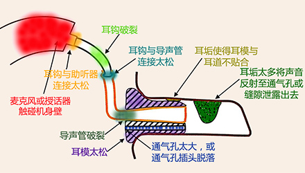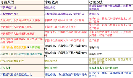 <span style="font-size:16px;"> 嘯叫,一直是引起助聽器使用者不滿的一大原因,也是驗配師在助聽器調試時最為棘手的難題之一。</span></p><p><span style="font-size:16px;"> 通常,嘯叫分內部嘯叫和外部嘯叫。內部嘯叫常由內部零件故障引起,而外部嘯叫則是與助聽器外殼或耳模,助聽器調試等有關。</span></p><p style="text-align: center;"><span style="font-size:16px;"><img src="/upfiles/201810100140556872.jpg" alt="" /><br /></span></p><p><span style="font-size:16px;"> 我們常常說的外部嘯叫是在聲音被麥克風拾取、放大器放大、授話器轉換后,又從各種縫隙(如外殼與耳道的縫隙、通氣孔)中“跑”出來,又“跑”進去,如此反復多次,使得聲音越來越大,產生“吱吱吱”的惱人嘯叫。</span></p><p><span style="font-size:16px;"> 以助聽器的角度來看,shou話器把聲音授給耳朵聽,當用“授”,即授話器。</span></p><p><span style="font-size:16px;"> 接下來將分別針對定制式(ITE/ITC/CIC)和耳背式(BTE)助聽器的嘯叫問題,跟著產生嘯叫的路徑,一一“攻破”嘯叫難題。注意,這里不說助聽器調試,只尋嘯叫路徑,并“堵死”嘯叫“通路”,讓進入助聽器的聲音“不走回頭路”。</span></p><p><span style="font-size:16px;"> 1、ITE/ITC/CIC助聽器</span></p><p><span style="font-size:16px;"> 先來看看ITE/ITC/CIC助聽器可能發生嘯叫的路徑。</span></p><p><span style="font-size:16px;"> 圖1里是一個定制式助聽器佩戴于外耳道內的示意圖,各種顏色的字和相應顏色的標記展示了發生嘯叫的各種情況。</span></p><center><span style="font-size:16px;"><img alt="" src="/upfiles/201810100142273990.png" width="440" height="250" /></span></center><p></p><p style="text-align: center;"><span style="font-size:16px;">圖1:ITE/ITC/CIC助聽器發生嘯叫的路徑一覽</span></p><p style="text-align: left;"><span style="font-size:16px;"> 例如,紅色表示“麥克風管子脫落”,這屬于助聽器內部零件脫落、故障,為內部嘯叫。</span></p><p><span style="font-size:16px;"> 橙色表示“外殼佩戴太松”,這屬于外殼不密封的聲音泄露,為外部嘯叫。</span></p><p><span style="font-size:16px;"> 那如何檢查出是這些原因,并對問題進行相應處理呢?請對照表1中的“診斷依據”和“處理方法”查看。</span></p><center><span style="font-size:16px;"><img alt="" src="/upfiles/201810100142337254.png" width="520" height="250" /></span></center><p></p><p style="text-align: center;"><span style="font-size:16px;">表1:ITE/ITC/CIC助聽器產生嘯叫的可能原因及對應的診斷依據、處理方法</span></p><p><span style="font-size:16px;"> 例如,當發現“手指堵住麥克風入聲口后仍有嘯叫”,可推斷原因是“麥克風管子從麥克風或外殼上脫落”或“麥克風或授話器移動,觸碰到外殼或其他傳感器”,這時的處理方法是“送廠維修”。</span></p><p><span style="font-size:16px;"> 2、BTE助聽器</span></p><p><span style="font-size:16px;"> 學會了看ITE/ITC/CIC助聽器的一圖一表,再來看看BTE助聽器的嘯叫路徑圖(圖2),以及表2中羅列的可能原因、診斷依據和處理方法,相信看起來更加輕松、直觀、一目了然。</span></p><center><span style="font-size:16px;"><img alt="" src="/upfiles/201810100142383483.png" width="440" height="250" /></span></center><p></p><p style="text-align: center;"><span style="font-size:16px;">圖2:BTE助聽器發生嘯叫的路徑一覽</span></p><center><span style="font-size:16px;"><img alt="" src="/upfiles/201810100142449945.png" width="462" height="273" /></span></center><p></p><p style="text-align: center;"><span style="font-size:16px;">表2:BTE助聽器產生嘯叫的可能原因及對應的診斷依據、處理方法</span></p><p><span style="font-size:16px;"> 更多詳情請登錄www.huiyoutank.com。</span></p>" />