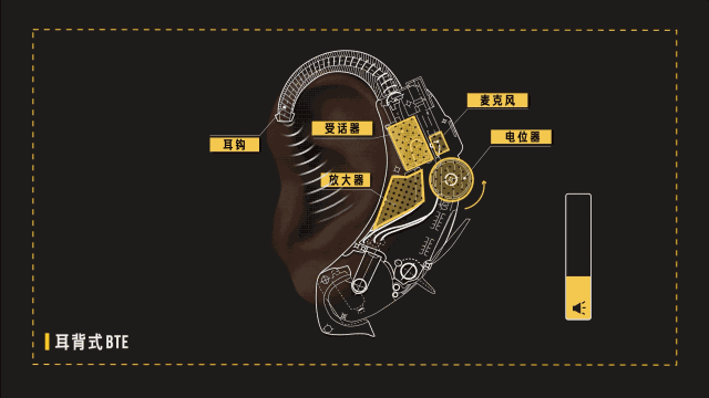 以耳背式為例,麥克風可以把外部聲音轉化為電流,然后經放大器增大電壓,再利用受話器把電流轉化成聲音通過耳鉤送進耳朵。