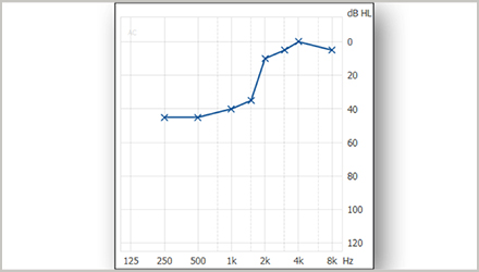 在本文中特指那些低頻為中度聽力損失,中高頻聽力正常或接近正常的,其中不包含傳導(dǎo)性聽力損失和混合型聽力損失,單指感音神經(jīng)性聽力損失。