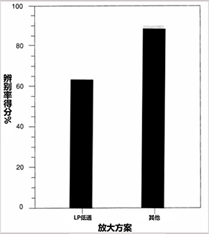 此外,分別測(cè)試每個(gè)受試者在低通(LP)和其他放大方案下的高頻輔音辨別率得分,結(jié)果顯示,其他放大方案都高于低通(LP)的輔音辨別率得分,如下圖所示。