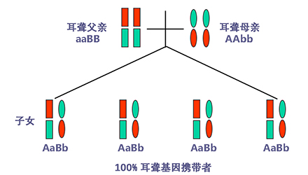 聽力正常有時(shí)只是“表象”,如果骨子里“隱藏”著聽損致病基因,這代“躲”過了聽力損失,可是下一代、下下一代呢?</p><p> 生活中我們會(huì)發(fā)現(xiàn),有一些父母雙方都有正常的聽力,但生出的孩子卻患有遺傳性聽力損失,很多人都會(huì)感到詫異,甚至父母本身都無法相信自己竟然生出了弱聽的孩子。</p><p> 其實(shí),此類“怪異事情”的發(fā)生離不開基因的作用,這與遺傳性聽損中的常染色體隱性遺傳密切相關(guān)。</p><p> 今天就帶大家看看:常染色體隱性遺傳性聽損是怎么一回事?它有什么特點(diǎn)呢?基因又是如何“從中作祟”的呢?</p><p> 先來說說隱性遺傳為什么“隱藏”在骨子里</p><p> 俗話說,龍生龍,鳳生鳳,老鼠的兒子會(huì)打洞。這些表現(xiàn)都是基因所賦予的、與生俱來的,我們稱這種表現(xiàn)是顯性的。但有時(shí),即便你骨子里帶著那份基因,可是沒有表現(xiàn)出來。</p><p> 例如上文說到的,父母雙方聽力正常,但其實(shí)他們?nèi)杂新爴p致病基因,這種表現(xiàn)就叫隱性。</p><p> </p><center><img alt="" src="/upfiles/201904260337585875.png" width="440" height="250" /></center><p></p><p> 接著說說常染色體隱性遺傳性聽損“隱藏”的聽力損失</p><p> 常染色體隱性遺傳性聽損是指與聽力損失表型相關(guān)的基因位于常染色體上,是最常見的遺傳性聽損,約占80%。 一般而言,這類聽力損失多指非綜合征型聽損,即聽力下降是其唯一臨床表現(xiàn),大多數(shù)患者癥狀早發(fā)且程度較重。</p><p> 這類聽力損失只有在來自父母的等位基因均攜帶致病突變時(shí)才出現(xiàn)聽力下降。</p><p> </p><center><img alt="" src="/upfiles/201904260338048765.png" width="440" height="250" /></center><p></p><p> 根據(jù)人類基因組命名委員會(huì)的規(guī)則,以DFNB來表示常染色體隱性遺傳性聽損。</p><p> 第一個(gè)致病基因座位表述為DFNB1,此后依據(jù)基因座發(fā)現(xiàn)及獲得命名的時(shí)間順序,依次命名為DFNB2,DFNB3……</p><p> 目前,常染色體隱性遺傳的基因座位一共有86個(gè)。其中DFNB1和DFNB18中各有兩個(gè)聽損致病基因,其他為各一個(gè)聽損致病基因。</p><p> 例如,GJB2基因是中國人最常見的聽損致病基因,在兒童非綜合征聽損中占40%,其基因座位為DFNB1。</p><p> </p><center><img alt="" src="/upfiles/201904260338091241.png" width="440" height="250" /></center><p></p><p> 聽損隱性遺傳表現(xiàn)各式各樣不是想“躲”就能“躲”</p><p> 涉及到不同聽損致病基因的共同作用,常染色體隱性遺傳方式有很多,下面就以最常見且最簡單的方式進(jìn)行舉例分析:</p><p> 1. 父母雙方聽力正常,都為聽損致病等位基因的攜帶者(Aa),則子女中有25%的概率患有聽力損失,50%的概率為聽損致病基因攜帶者。</p><p> </p><center><img alt="" src="/upfiles/201904260338147337.png" width="440" height="250" /></center><p></p><p> 2. 父母雙方都患有聽力損失,且聽損致病基因?yàn)榈任换?aa),則子女基因都為(aa),100%患有聽力損失,也就是代代相傳。</p><p> </p><center><img alt="" src="/upfiles/20190426033818859.png" width="440" height="250" /></center><p></p><p> 3. 父母一方為聽力正常者(AA),另一方患有聽力損失(aa),則子女基因都為(Aa),即聽力正常的聽損致病基因攜帶者。</p><p> </p><center><img alt="" src="/upfiles/201904260338249987.png" width="440" height="250" /></center><p></p><p> 4. 父母一方為聽力正常的聽損致病基因攜帶者(Aa),另一方患有聽力損失(aa),則子女基因50%的概率為聽力正常但攜帶聽損致病基因(Aa),50%的概率患有聽力損失(aa)。</p><p> </p><center><img alt="" src="/upfiles/201904260338297827.png" width="440" height="250" /></center><p></p><p> 5. 父母雙方都有聽力損失,但非等位基因,父親為(aaBB),母親為(AAbb),則子女基因都為AaBb,即100%的概率聽力正常。</p><p> </p><center><img alt="" src="/upfiles/201904260338427827.png" width="440" height="250" /></center><p></p><p> 常染色體隱性聽損遺傳的特征下一代“躲”得過嗎?根據(jù)如上分析,我們可以總結(jié)常染色體隱性遺傳性聽損具有以下特征:</p><p> 1. 聽損致病基因位于常染色體,因而聽損致病基因的遺傳與性別無關(guān),即男、女性的患病機(jī)會(huì)均等;</p><p> 2. 系譜中通常看不到連續(xù)傳遞現(xiàn)象,往往是散發(fā)病例,但同胞中可有多人患病;</p><p> 3. 患者的雙親一般不患病,但都是致病基因的攜帶者;</p><p> 4. 患者的同胞有1/4的風(fēng)險(xiǎn)患病,患者表型正常的同胞中有2/3的概率為攜帶者;</p><p> 5. 患者的后代一般不發(fā)病,但一定是聽損致病基因攜帶者;</p><p> 6. 近親婚配時(shí),子女的發(fā)病風(fēng)險(xiǎn)顯著提高,因?yàn)楣餐淖嫦瓤赡軅鬟f給他們共同的突變基因。</p><p> </p><center><img alt="" src="/upfiles/201904260338494272.png" width="440" height="250" /></center><p></p><p> 可見,遺傳性聽損有多種多樣的表現(xiàn)形式,需要細(xì)分遺傳模式。 父母的不同表型和不同聽損致病基因決定了其后代各種各樣的表現(xiàn)形式。</p><p> 正常聽力的父母可能生出弱聽的孩子,哪怕是同有聽損的父母也有可能生出聽力正常的孩子。</p><p> 隱性基因表現(xiàn)各異怎么辦?唯有基因檢測明確</p><p> 所以,要想知道自己及其配偶是否攜帶聽損致病基因,是否會(huì)遺傳給后代,后代的遺傳概率有多大,如何規(guī)避部分致病基因?qū)е碌穆犃ο陆?.....唯有通過遺傳性聽障基因檢測。</p><p> 才能幫助我們更好了解各種可能的表現(xiàn)形式,