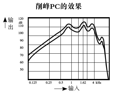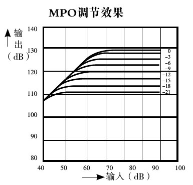 3)MPO—最大輸出限制:為了防止聲輸出過(guò)高超過(guò)弱聽(tīng)人士的不適閾,大多數(shù)助聽(tīng)器都有最大聲輸出限幅裝置,如削峰PC、自動(dòng)增益控制AGC電路等。削峰電路就是把信號(hào)中超過(guò)某一限度的峰值部分削去,但削峰后輸出有失真,且信噪比小;AGC電路是較先進(jìn)的限幅控制電路,它把大于不舒適閾的輸出聲壓縮后再輸出,因此不會(huì)帶來(lái)失真,但是壓縮需要起效時(shí)間,對(duì)于特別敏感的弱聽(tīng)人士,有時(shí)采用削峰更安全。