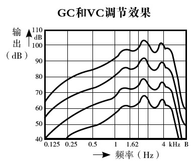 5)增益控制(GC)和音量調(diào)控(VC)用于調(diào)節(jié)全頻段的主聲增益,佩戴者感覺(jué)到的是整體響度的大小變化,通常VC的調(diào)節(jié)范圍小于GC。