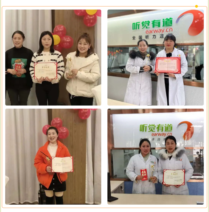 <span style="white-space:pre"> </span>2022年,聽覺有道全體員工緊緊圍繞著公司總體經營目標,團結拼搏,共同努力,在各自的崗位都做出了積極的貢獻。其中,涌現出了許多相對突出的、務實勤干、愛崗敬業、能起表率作用、具有正能量的優秀門店和員工。<br /><br /> 為提高員工積極性,樹立標桿,激勵大家不斷進取,打造“開心上班愉快生活”的企業文化,聽覺有道對“2022年度優秀門店”進行了表彰!<br /><br /> <strong>四川區域優秀門店<br /><br /> 第一名</strong><br /><br /> 閬中張飛南路驗配中心<br /><br /> 成都金沙驗配中心<br /><br /> <strong> 第二名</strong><br /><br /> 遂寧德勝西路旗艦/驗配中心<br /><br /> <strong>第三名</strong><br /><br /> 德陽綿竹驗配中心<br /></span><p style="text-align: center;"><img src="/upfiles/202303170533481781.png" width="720" alt="" /><br /></p><span style="font-size:16px;"> <strong>飛躍獎</strong><br /><br /> 閬中張飛南路驗配中心<br /><br /> 綿陽江油旗艦/驗配中心<br /><br /> 成都交大驗配中心<br /><br /> 成都南二環驗配中心<br /><br /></span><p><span style="font-size:16px;"> 成都金沙驗配中心</span></p><p><span style="font-size:16px;"><br /></span></p><p style="text-align: center;"><img src="/upfiles/202303170534243591.jpg" width="720" alt="" /><br /></p><p><br /></p><span style="font-size:16px;"> 她們在工作崗位上兢兢業業、不怕困難,具有較強的學習能力和進取精神,專業能力和工作態度獲得無數用戶的點贊好評,將公司的核心價值觀踐行于實際工作中。<br /><br /> 她們真誠務實,為用戶提供溫暖專業的服務,工作效率高,實現一個個公司規劃的經營目標;她們具有較強的凝聚力和創造力,相互學習成長,共同分享交流心得,是所有助聽器驗配師的榜樣!<br /><br /> <strong> 廣東區域優秀門店<br /><br /> 第一名<br /></strong><br /> 中山小欖驗配中心<br /><br /><strong> 第二名</strong><br /><br /> 深圳布吉旗艦中心<br /><br /> <strong>第三名</strong><br /><br /> 東莞石龍驗配中心<br /></span><p style="text-align: center;"><img src="/upfiles/202303170534495227.png" width="720" alt="" /><br /></p><span style="font-size:16px;"> <strong> 飛躍獎</strong><br /><br /> 東莞常平驗配中心<br /><br /> 東莞石龍驗配中心<br /><br /> 廣州新塘旗艦中心<br /><br /> 江門恩平驗配中心<br /><br /> 深圳布吉旗艦中心<br /><br /></span><p><span style="font-size:16px;"> 東莞婦幼保健院驗配中心</span></p><p><span style="font-size:16px;"><br /></span></p><p style="text-align: center;"><img src="/upfiles/202303170535083.jpg" width="720" alt="" /><br /></p><p style="text-align: center;"><br /></p><span style="font-size:16px;"> 她們懷著對工作的高度熱情加入聽覺有道全國聽力連鎖,從職場新人的迷茫,到如今對驗配師本職工作的駕輕就熟,進步明顯,成績斐然。隨著專業水平和服務意識不斷提升,她們得到用戶的高度認可!<br /><br /> 她們如今是助聽器驗配師中的佼佼者,將“有聽有情有道”的企業理念融會貫通,落到實處,為聽覺有道增添了濃墨重彩的一筆!優秀門店,既是對她們的鼓勵和肯定,更是公司對她們的期許,她們就像一把號角,將聽覺有道的理念和精神傳遞下去!<br /><br /> 所有過往,皆為序章;所有未來,皆是可盼。這份榮譽,既是對大家過往付出的肯定,更寄予著希冀與厚望。<br /><br /> 希望每一位聽覺有道員工都繼續保持專業、溫暖、真誠的工作態度和飽滿的工作熱情、務實的工作作風。讓我們向榜樣學習,共同為聽覺有道新一年再創佳績,貢獻自己的力量!</span>" />